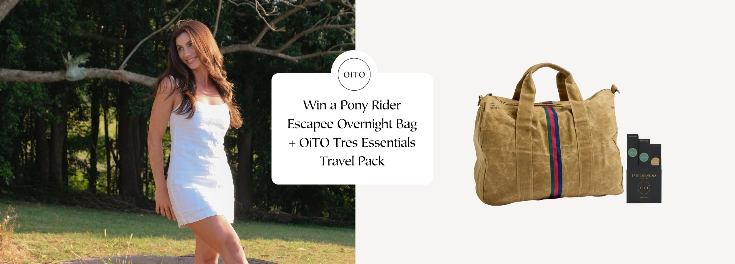 Win a Pony Rider Escapee Bag + OiTO Très Essentials Travel Pack valued at $300.